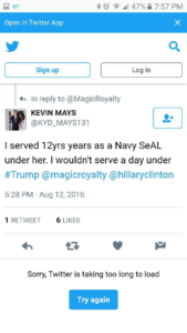Well Kevin Mays, you’re getting attention now as fake SEAL, first class creeper, and all-around douchebag.