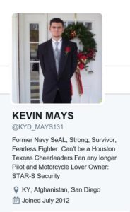 SeAL, pronounced “See-All”. There was another phony SEAL that used that used that, Peter Sumaruk, tried the “contractor SEAL” bit and called himself, “SeAL”. Kevin Mays, phony SEAL, must’ve taken a page from another phony, Peter Sumaruck: