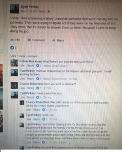 Someone did their research on this Cyril Pelkey fellow, who, during a conversation on Face book made cryptic references to his military experience;