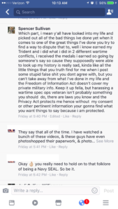 Oh boy. This guy is a pip. He is protected, says he. There are laws, says he. He has privacy rights, says he. Again, says he, he is protected. I don’t know about anyone else but when I think of a SEAL, I don’t associate cries of ‘I am protected’ with him. As for his secret records, they apparently are so secret that the Navy itself is unaware. That’s some kind of secret there, I’ll say.