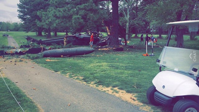 Bobo sends the news that a military helicopter crashed on the third hole of a golf course in Leonardtown, Maryland.