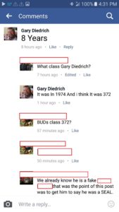 “I move that Gary Diedrich; phony SEAL, phony Vietnam veteran has earned the WALL O INSULTS.”