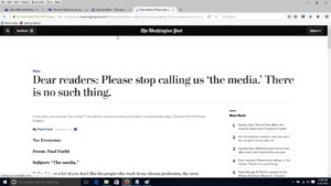 Fact is, there really is no such thing as “the media.” It’s an invention, a tool, an all-purpose smear by people who can’t be bothered to make distinctions.