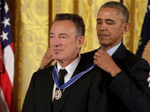So, he was just a fricken coward. I don’t think I ever gave him a penny anyway – he never impressed me with what he thinks is talent. The picture above is from when former President Obama awarded Springsteen the Presidential Medal of Freedom last year.