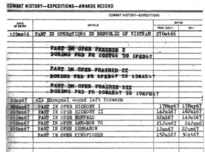 Trained as a USMC Amtrac crewman; combat service in Vietnam; Purple Heart; and his record posted above shows that he was involved in some significant action in Vietnam in 1967.