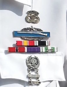 Good god! If I knew then how easy it was, I wouldn’t have bothered with serving 24 years. All I have to do is find an old camo top, beret, pick up some bling and fruit salad at the local military surplus store, and viola, instant bad-ass, hero extraordinaire, etc, etc.
