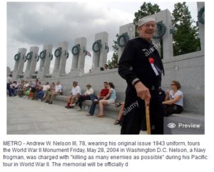 Another one of those “sekrit nekkid combat swimmers”? ANDREW NELSON couldn’t be happy with being one of the “Greatest Generation” for just doing his duty, but had to go balls deep with his STOLEN VALOR media whoring stories.