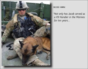 You can see that Jacob claims to have ten years of service as a dog handler in the Marine Corps and they include this picture to reinforce that claim in their video;