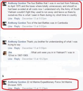 Our partners at Military Phonies share their work on Anthony Gordon who claims that he was the last Marine to leave Saigon and that only moments before his evacuation, he was engaged in a brutal battle with communist forces in Cambodia.