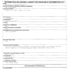 Clarence claims that he was an engineer which is a 12-series MOS, the Army says he was a 62-series maintenance guy.