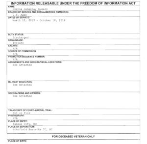 Must’ve been brutal, you know, being stationed in Hawaii. Joshua Jamesray Gueary was an engineer in a bridging unit, according to his records. He never deployed, and, oh, by the way, he didn’t complete his commitment, either. He did three years and seven months, discharged as a private last Fall.