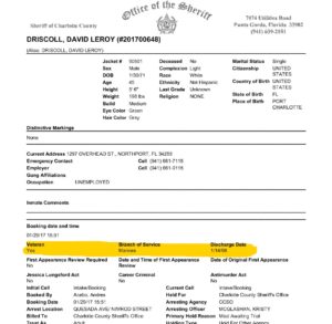 Someone sent us their research on this fellow, David Leroy Driscoll from Port Charlotte, Florida who earlier this year told Charlotte County Sheriff Deputies there that he is a former Marine, probably to help him extricate himself from some out-of-county warrants and a petty larceny beef;