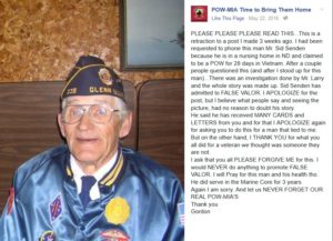 This fellow Sid Sanden was passing himself off as a Vietnam Era POW with 28 days in captivity until folks saw the picture of him on Facebook.