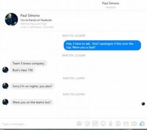 The folks at Military Phonies shared their work on this Paul Simono fellow who has been out there pretending to be a SEAL for years. Someone engaged him in a conversation and Simono responded that he was in Bravo Company, Team 5 and that he’d attended some BUD/S class in the next century;