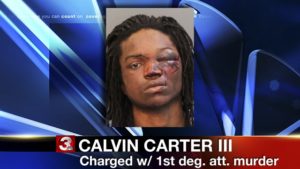 Calvin Carter III was arrested Monday, and charged with first-degree attempted murder, especially aggravated burglary, reckless endangerment, and three counts of aggravated assault, according to the arrest report.