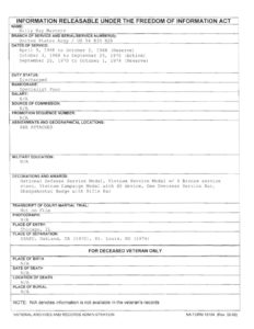 There’s nothing to indicate that he was a POW, or anything to indicate that he was ever in a position to become a POW while he was in Vietnam.