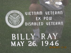 POW? NO. Alive yes. Disabled? Only in his head. It would be difficult to be disabled while shifting gears hammer down going 70+ mph in his “hot rod”. But his lies on this tombstone do not not surprise me. He lied when that transmission fell out of his “hot rod” and took off an 11 year old girls leg as he has lied about what is on his tombstone. His blatant vulgarity is a disgrace to every veteran, sickens me.
