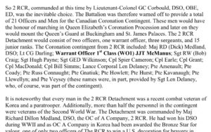 The constant on his many make-believe uniforms is the Queen’s Coronation Medal. That particular medal was presented to just 15 junior ranks of the 2nd Bn of The RCR, all combat veterans/paratroopers who were members the Canadian Contingent in London, England during the 1953 ceremony. Not surprisingly, Mr Kelly’s name is not on that list…