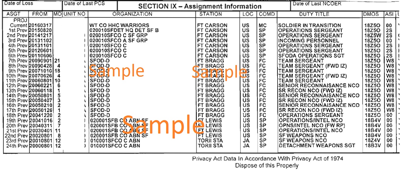 This unnamed individual spent five years with Delta preceded by more than four years in Special Forces and followed by another seven years in Special Forces. Now we don’t know where he was operating or what he was doing, but, obviously, he was a top-tier operator and the NPRC still told us about his service. They also told us about his training and his awards.
