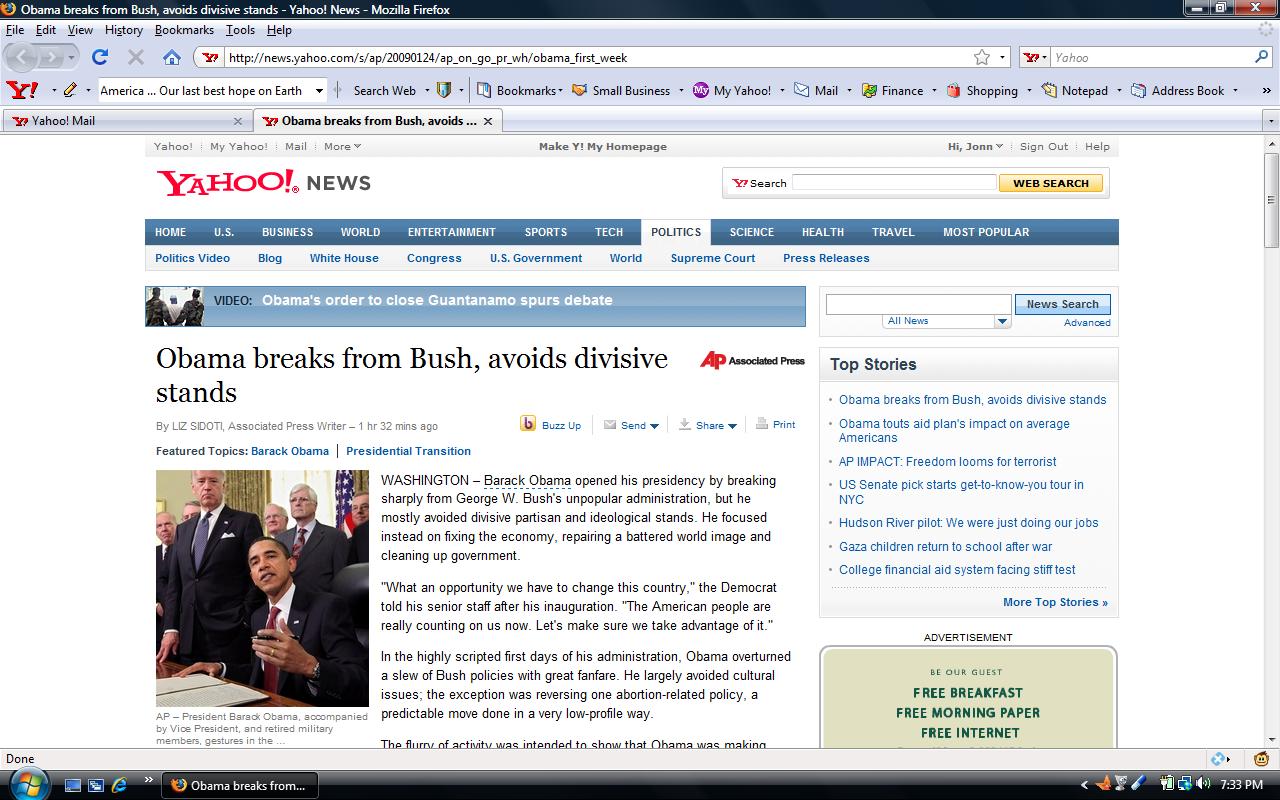 Barack Obama opened his presidency by breaking sharply from George W. Bush’s unpopular administration, but he mostly avoided divisive partisan and ideological stands. He focused instead on fixing the economy, repairing a battered world image and cleaning up government.