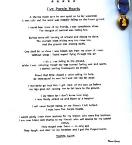 He wrote a poem about his mythical five purple hearts? That’s a first.
