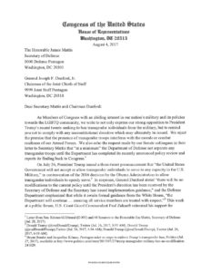 More than 50 @HASCDemocrats @HouseJudDems urge Mattis & Chiefs not to comply w/ Trump unconstitutional trans ban https://t.co/czRGkNWaDj pic.twitter.com/CNdJGtzNCr
