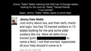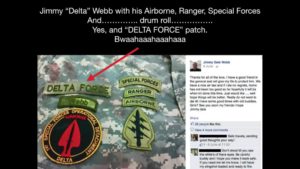 Our partners at Guardians of the Green Beret shared their work on this goofball, Jimmy “Delta” Webb who claimed to be a special forces “Delta” operator;