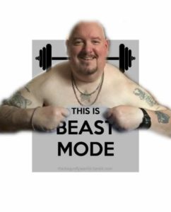 From the flab factor showing in the ‘beast mode’ picture, I wonder if he lifts anything besides the ice cream scoop.