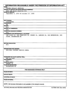 Yeah, no. The Navy only remembers giving him the National Defense Service Medal, they do remember his six years of service from 1972 – 1978 and his discharge as an E-1.