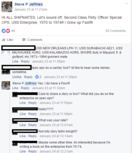 Well, according to the Facebook conversation pictured above, he served on the USS Enterprise so maybe he had one of those time travel machines?