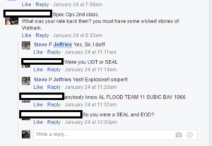 Our partners at Military Phonies share their work on this Steve Jeffries in Fresno, California, who claims to have been a Navy SEAL in Vietnam with a Navy Cross, 2 Purple Hearts, and 120 kills as a sniper;