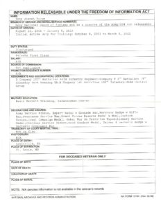 Yocum was a trained infantryman, assigned to the 1/151st Infantry, but he was awarded no Combat Infantryman Badge for his time there, probably because he wasn’t engaged in any combat. According to his FOIA, Yocum spent about eleven years in service, in the Guard, and left as a Private First Class, although he claims that he was a specialist. His mates claim that he was suspected of malingering and that influenced his decision to leave the Guard.