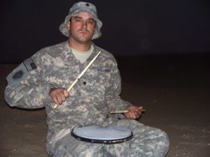 According to unnamed sources, Soldiers’ Angels provided him with a support vehicle which he would ride from town-to-town, get out at the city limits and start beating his drum through town, as if he had been walking the whole time. I’m told that he gained 40 pounds while walking across the country. That’s pretty hard to do when you’re walking twenty miles/day. When someone ambushed him and walked with him for 2-3 miles, Yocum got shin splints – an injury from being out of shape.