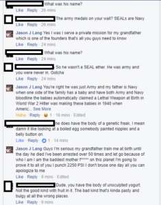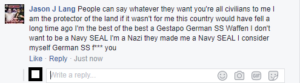 Well, he got so mad that he is now a Waffen SS Nazi, since he can’t be a SEAL on the internet;