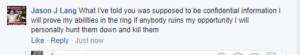 He used to be a friend of a friend. Anyway, TWO phonies named Lang. Both MMA wannabes from NY. Interesting…