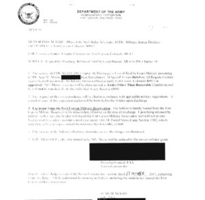 Yeah, no. He was in the Army, but he was a combat engineer at Fort Carson, Colorado, from 2006 – 2011. His discharge says that he had 3 years, 9 months and 22 days in the service, but the math on the DD214 differs. That makes me think that he has bad time for being a deserter. He was recommended for an other than honorable discharge in lieu of a Court Martial;