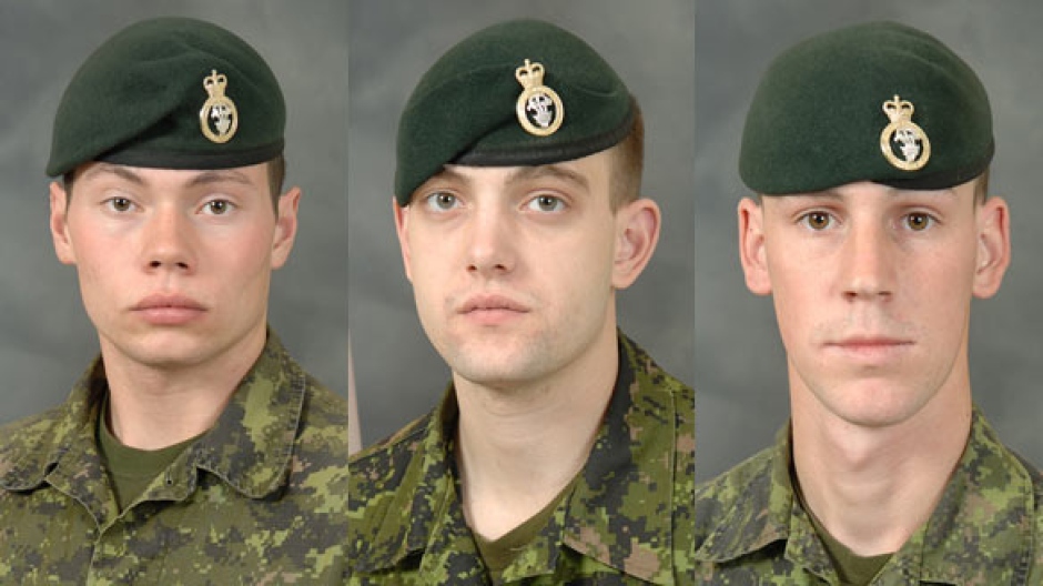 Cpl. Andrew Grenon, Cpl. Mike Seggie and Pte. Chad Horn were killed in the Zhari district of Afghanistan’s southern Kandahar province.