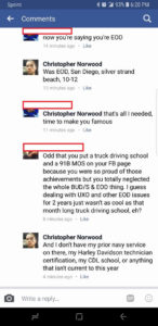 The folks at Military Phonies send us their work on this Christopher Norwood fellow. He claimed that he was US Navy EOD in a conversation on social media;