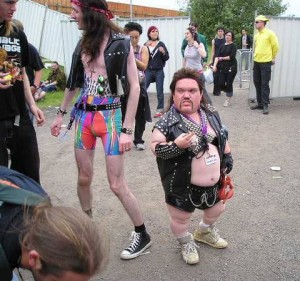 OMG!!!! Where else in the world can one see a leather clad gay dwarf and a rainbow-Speedo hippie in the same frame?