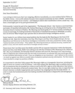 Former director of the CIA Mike Morell also resigned in protest to the school’s decision to hire Manning;