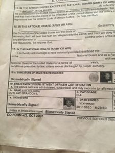 He said the same thing to me and sent me probably the same pics. It states he enlisted on 20110920 and the papers were bio metrically signed. Is that even a thing? No hand written signatures anymore? Damn I must be getting old. Anyway, he won’t answer questions like, which company he was in in boot camp, who his drill instructor was or anything like that. Aren’t you Marines able to spout those answers off without given it a thought?