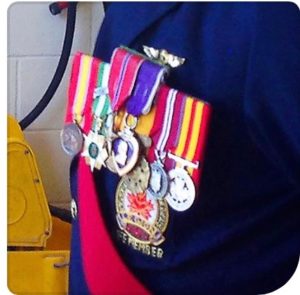 He wore the Purple Heart and the Bronze Star along with some flight wings. When confronted in social media about the finery, he responded that he was wearing the medals to honor friends, never thinking that anyone would think that he was claiming to have been awarded them;
