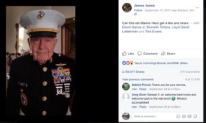Well, it just struck me as kind of funny that someone named James Jones would make a post on FB to gather likes for an old Marine.