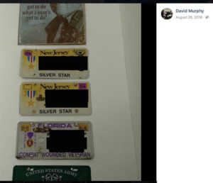how did he get those plates indeed? I hope someone has contacted the Jersy DMV and possibly the local prosecutors office. Lets hope he doesn’t take his wife to any veterans parades.