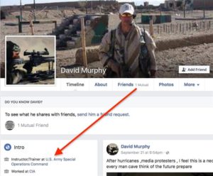 He claims CAG teammate of SFC Randy Shughart (Medal of Honor) and MSG Gary Gordon (Medal of Honor). He should be ashamed of himself. We contacted a brother that was there that day. Who served side by side with Gordon and Shurghart. He confirmed what we already knew. David Murphy was NEVER in that unit.