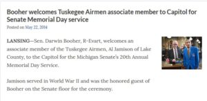 It identifies Jamison as a Tuskegee Airman but doesn’t have any direct quotes from Jamison.