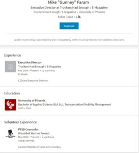 Someone sent us their work on this Mike Faram fellow who calls himself “Gunney”, not knowing how to the spell the shortened form of the Marine Corps rank (Gunny) Gunnery Sergeant.