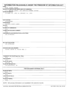 Looks like he Rocked out of Comm School in July of 83′ and was sent to Camp Lejuene. Spent Aug-Sept in Hospital and was Transferred to Reserves( Probably on paper only) Then Discharged in Jan 84.