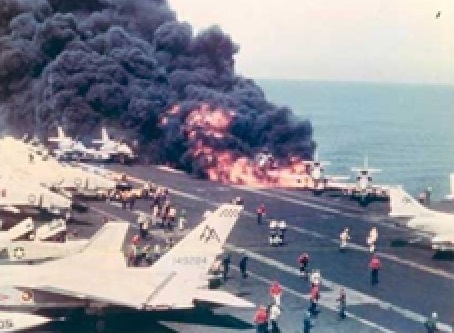 A friend was on the Forrestal that day. He never wanted to say too much about the fire beyond the fact that he was on the deck during it all, and felt lucky to have been there as opposed to other places. Still, he suffered injury.