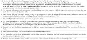 He is prohibited from buying and possessing firearms, if we are to believe the AFT Form 4473 (Question 11(i));